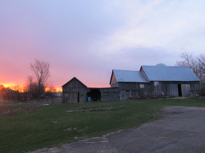 Beautiful Sunrise over the Historic Post & Bean Barn